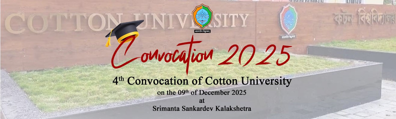 The Fourth Convocation for Cotton University students of Undergraduate and Postgraduate programmes passing out in the year 2023 and 2024 shall be held on 9th December 2025. The Convocation will also confer the undergraduate degree of the Sportspersons’ Programme 2024, and PhD degree till the last date of registration for Convocation.